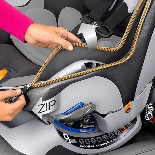 The NextFit Zip® accommodates infants and growing toddlers in rear-facing position then transitions smoothly to forward-facing position for older children. A removable newborn positioner provides a proper fit from 2.26-5kg, and a nine-position headrest and padded, no-rethread harness comfortably accommodate growth from 2.26-29.5kg.